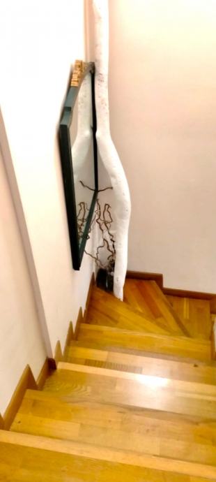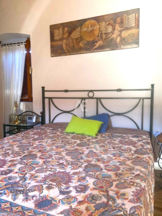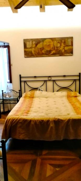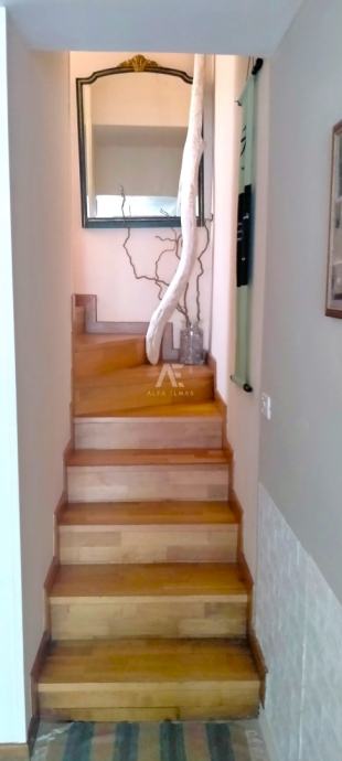 Na drugom katu se nalazi master spavaća soba sa vidljivim drvenim gredama, kupaonica sa tušem, WC-om, umivaonikom i bideom. Iz spavaće sobe pruža se izlaz na balkon sa pogledom na na prekrasni brdoviti pejzaž, dok se sa suprotne strane prostorije pruža pogled na more. Sva unutarnja stolarija je drvena, podni oblozi su od keramike i izbjeljene hrastovine.