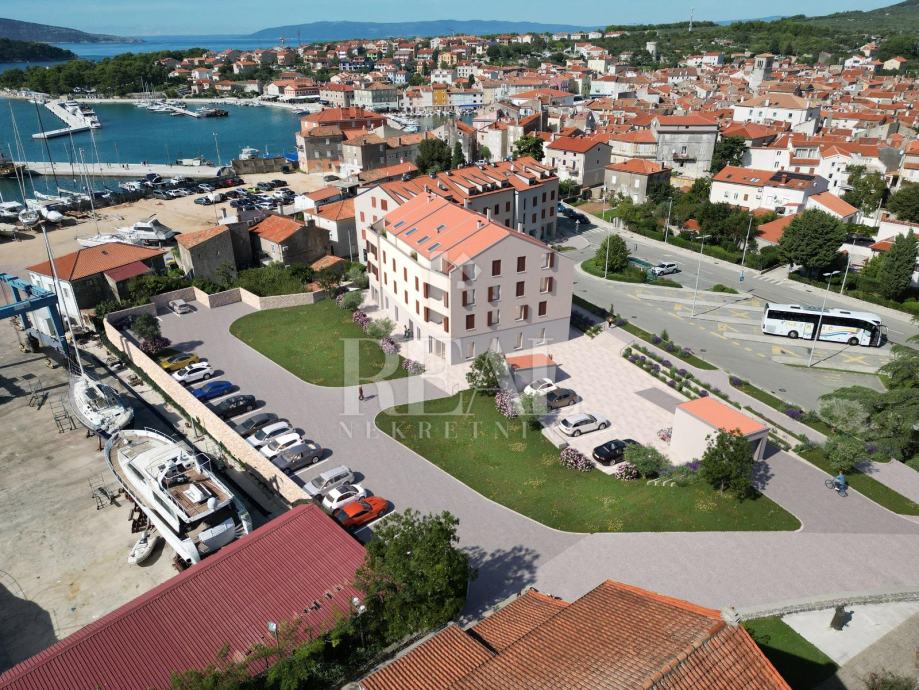 Novogradnja u Cresu, stan površine 64 m2 koji se sastoji od kuhinje blagovaonice sa dnevnim boravkom, spavaće sobe, kupaonice i loggie. Stan u vlasništvu ima parkirno mjesto i spremište. Predviđeni rok završetka radova kraj 2026.