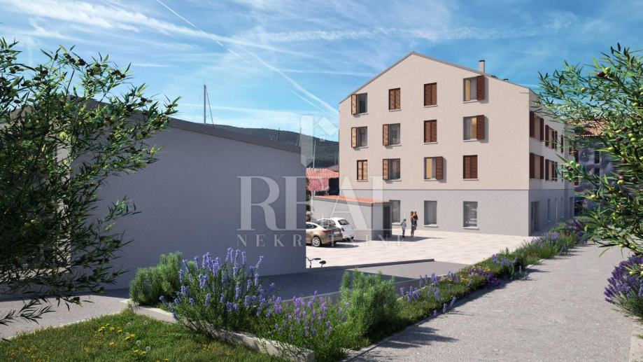 Novogradnja u Cresu, stan površine 75 m2 koji se sastoji od kuhinje blagovaonice sa dnevnim boravkom, 2.spavaće sobe, 2.kupaonice i krovne terase. Stan u vlasništvu ima parkirno mjesto i spremište. Predviđeni rok završetka radova kraj 2026.