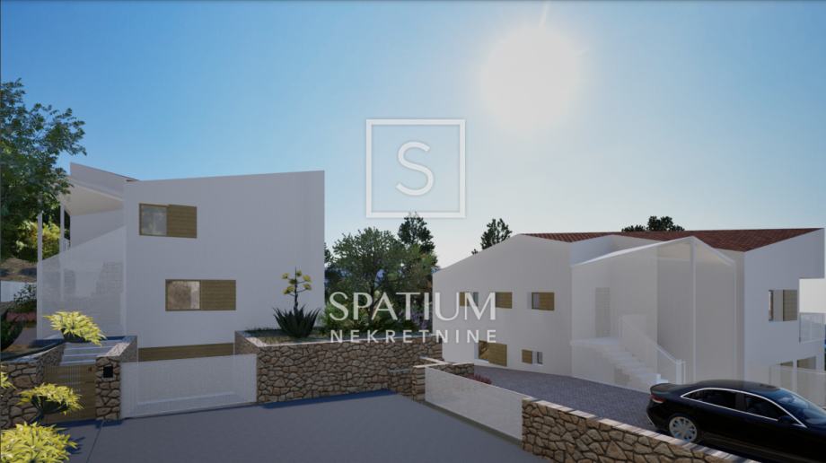 CRES, u ponudu smo dobili stan površine 92,91 m2 u novogradnji, u prizemlju manje stambene zgrade moderne arhitekture. Sastoji se od ulaznog prostora, hodnika, dnevnog boravka s kuhinjom, dvije spavaće sobe i kupaone. Objekt sadrži vanjsku terasu površine 14.57 m2, spremište 10.67 m2, dva parkirna mjesta 31.85 m2 te okućnicu od 73,68 m2. Nalazi se u mirnom dijelu, pogleda na zaljev i stari grad. Početak gradnje je 2025 godine, a očekivani završetak u 4/2026. godine.