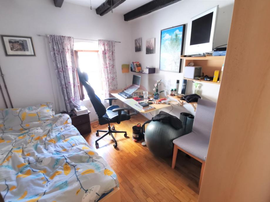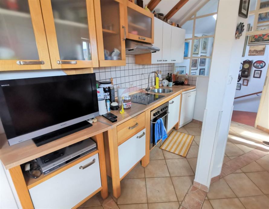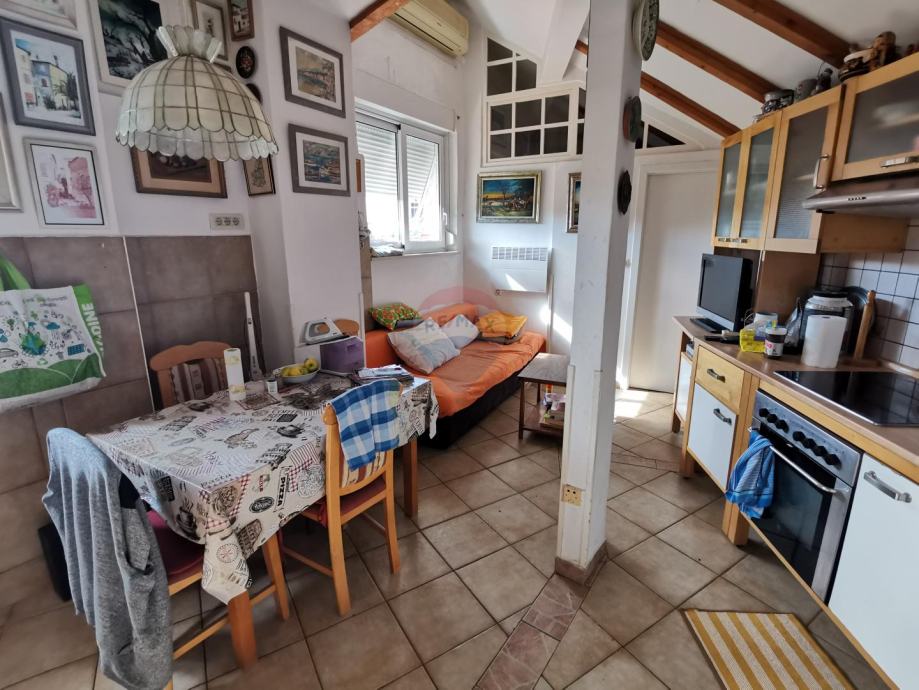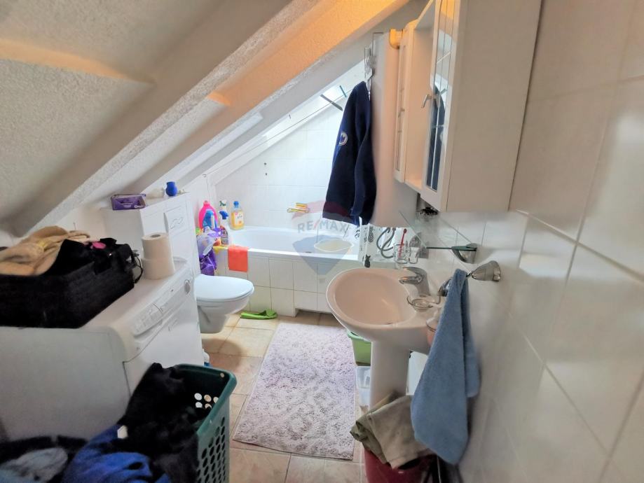 Stambeni prostor se nalazi na drugom katu i potkrovlju. Na drugom katu se nalaze tri spavaće sobe i dva kupatila,a u potkrovlju su smješteni kuhinja, dnevni boravak i kupatilo te ostava od 5,1 m2 koja ne ulazi u kvadraturu. Stambeno poslovni objekt ima veliki potencijal s obzirom na frekventu lokaciju.