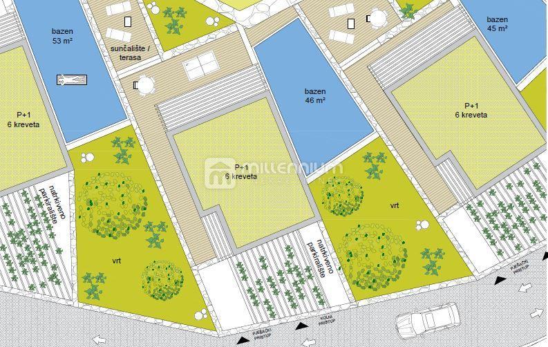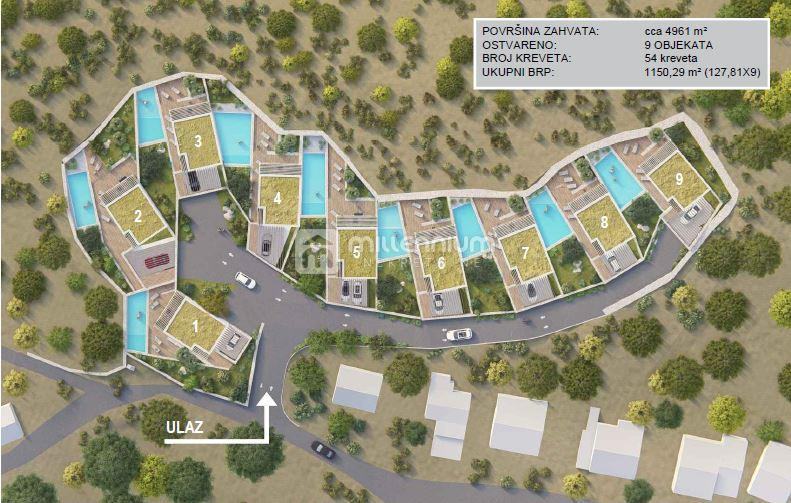 Predviđena je izgradnja 9 vila P+1 s bazenima.