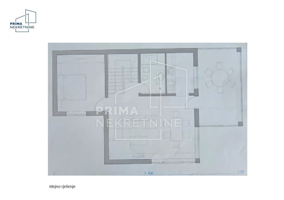 Prema planu, kuća se sastoji od dvije etaže po 85 m². Uz kuću dolazi i dvorište površine 181 m².