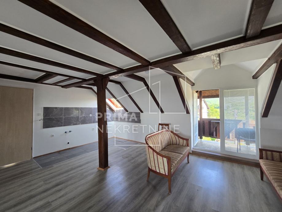 Prodaje se dvosoban stan od 64 m2 u potkrovlju kuće na Črešnjevcu, Remete. Stan ima i galeriju visine 1,86.