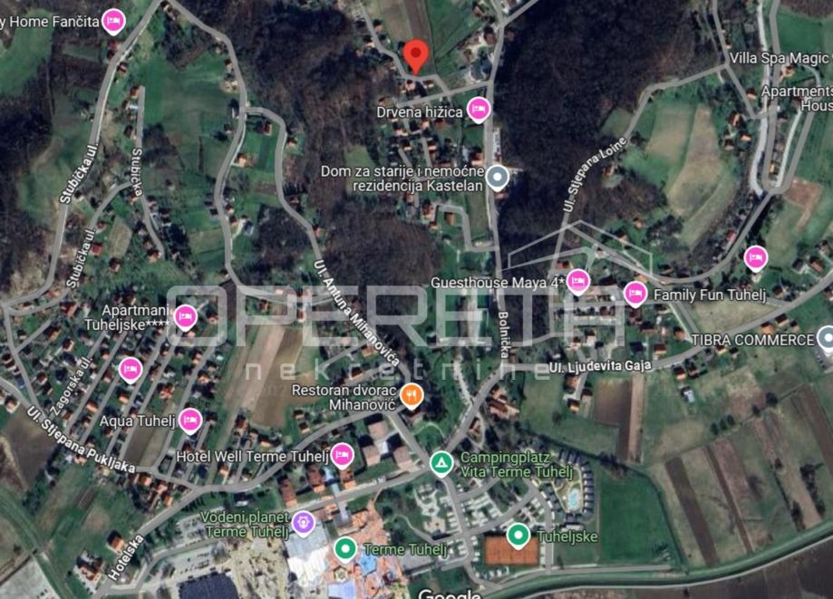 Lokacijski također predstavlja izuzetan potencijal, nalazi se na mirnoj, izoliranoj i jedinstvenoj lokaciji na svega 250 m do "starih" bazena i autobusne postaje te 500 m do popularnih "Termi Tuhelj". Preporuka!