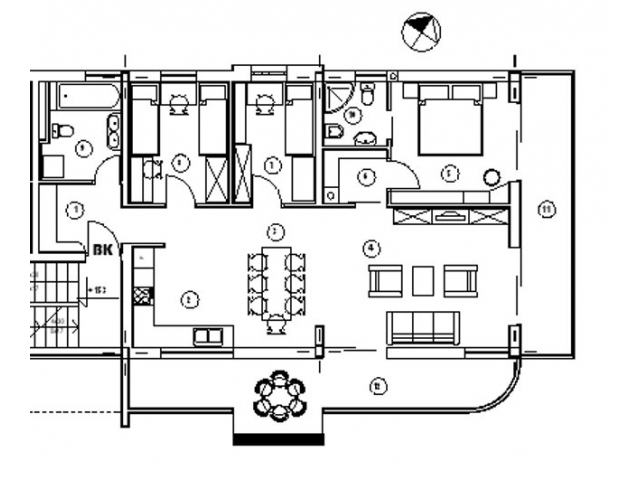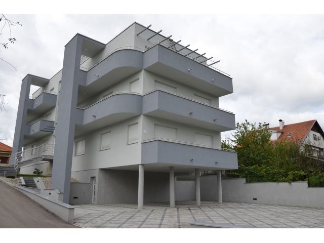 zgrade povšine 96.05 m2 sastoji se od: ulaznog prostora, kuhinje sa bagovanjem i dnevnom sobom sa izlazom na balkon, zatim tri spavaće sobe i dvije kupaonice od kojih je jedna vezana uz glavnu roditeljsku sobu. Stanu također pripada spremište u podrumu i dva vanjska parkirna mjesta od 13.00 m2.