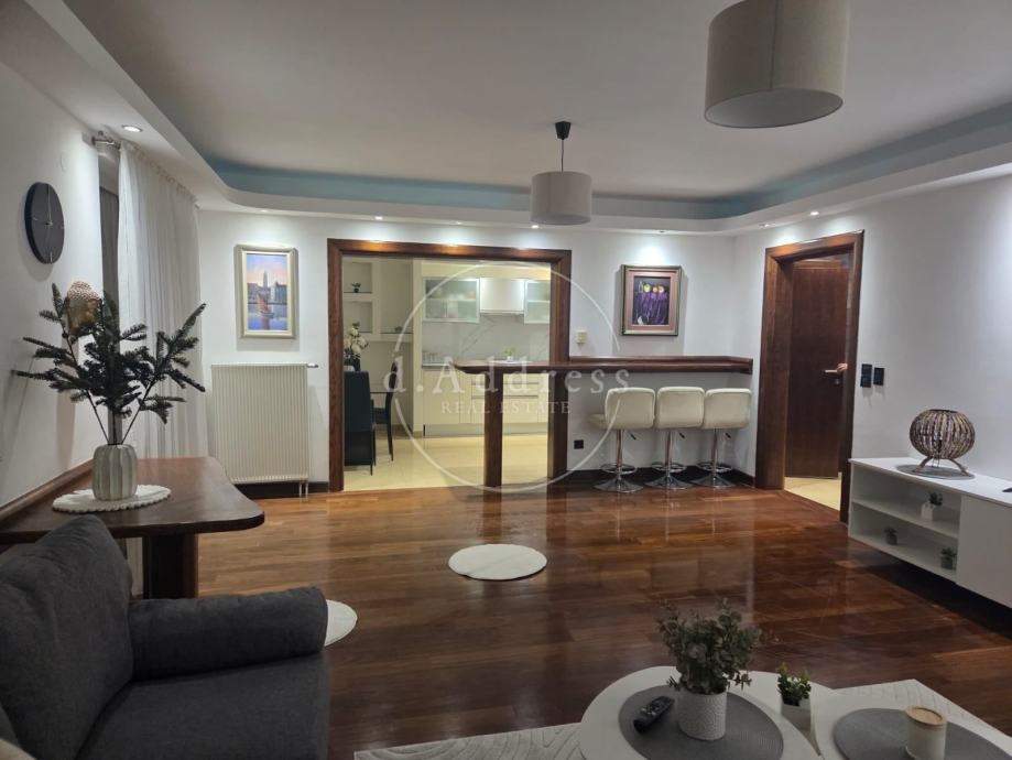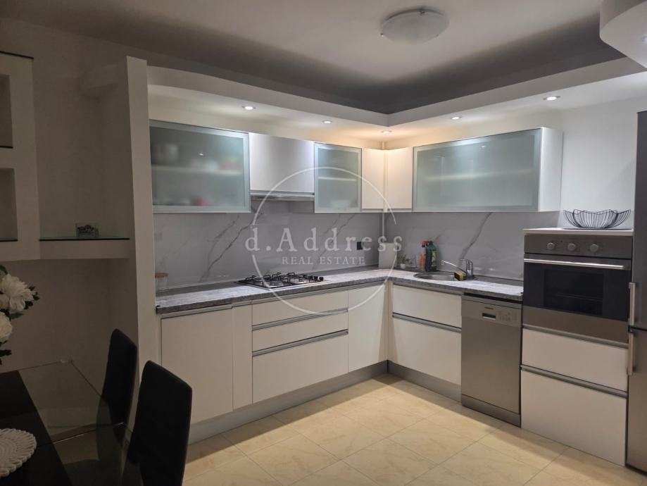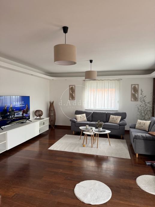 Stan se sastoji od ulaznog hodnika, velikog dnevnog boravka povezanog s kuhinjom opremljenom svim kuhinjskim aparatima i blagavaonicom, 2 spavaće sobe, garderobe, kupaonice, odvojenog gostinjskog wc-a i 2 balkona.