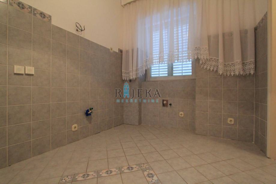 Smješten je u prizemlju, ima 100 m2, veliku dnevnu sobu, jednu veliku spavaću sobu i još jednu manju, kuhinju, kupaonu, terasu, dvorište na korištenje te dvije smočnice (šupe) ukupno 15 m2 koje također imaju dovedenu struju i vodu te se mogu prenamijeniti. Ulaz je s dvije strane (gornje i donje ulice). Dvorište i terasa su zajednički za korištenje s još 3 stana. Na objektu je novi krov, promijenjen prije 5 godina kao i sva nova stolarija (PVC). Podovi i instalacije struje i vode su nove.