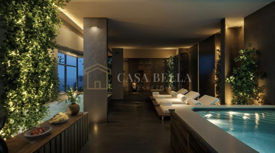 Zgrada je opremljena liftom i nudi brojne sadržaje za opuštanje i uživanje – spa centar, restoran, café bar te relax zonu za masaže i wellness tretmane. U objektu se nalazi recepcija i agencija koja se brine o održavanju i profesionalnom upravljanju najmom apartmana, čime se vlasnicima omogućuje stabilan i siguran povrat investicije.