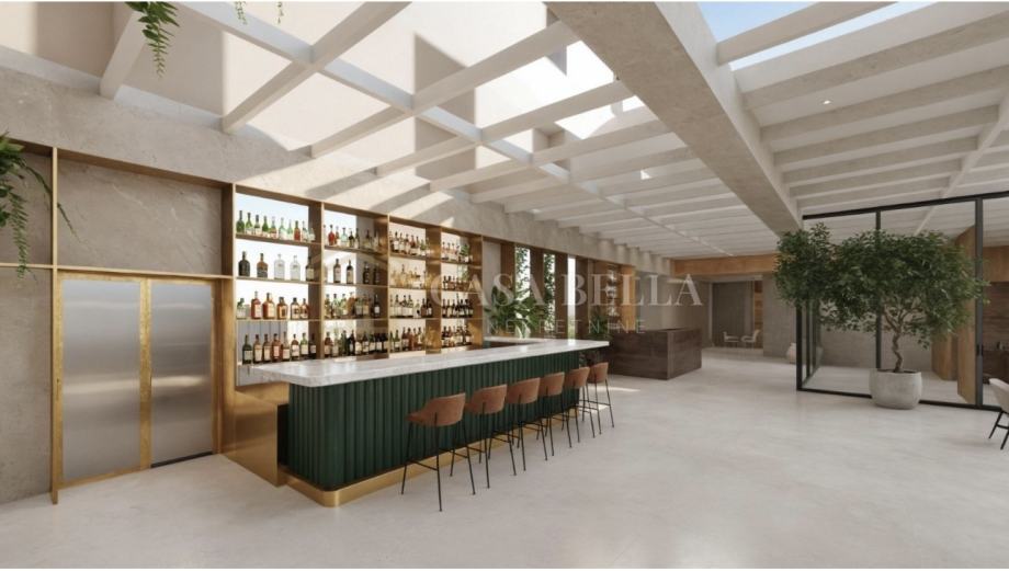 U interijeru su korišteni vrhunski materijali i moderni detalji. Kupaonice su opremljene namještajem od Kerok materijala otpornog na vodu i udarce, keramikom velikog formata (240x120 cm) te slavinama i tuševima u mat bijeloj boji sa zlatnim detaljima. Posebnu eleganciju prostoru daju indirektna rasvjeta, prekidači i utičnice TEM u mat crnoj boji, lakirana unutarnja vrata s magnetskom bravom i skrivenim pantima, te protuprovalna vrata Diere.