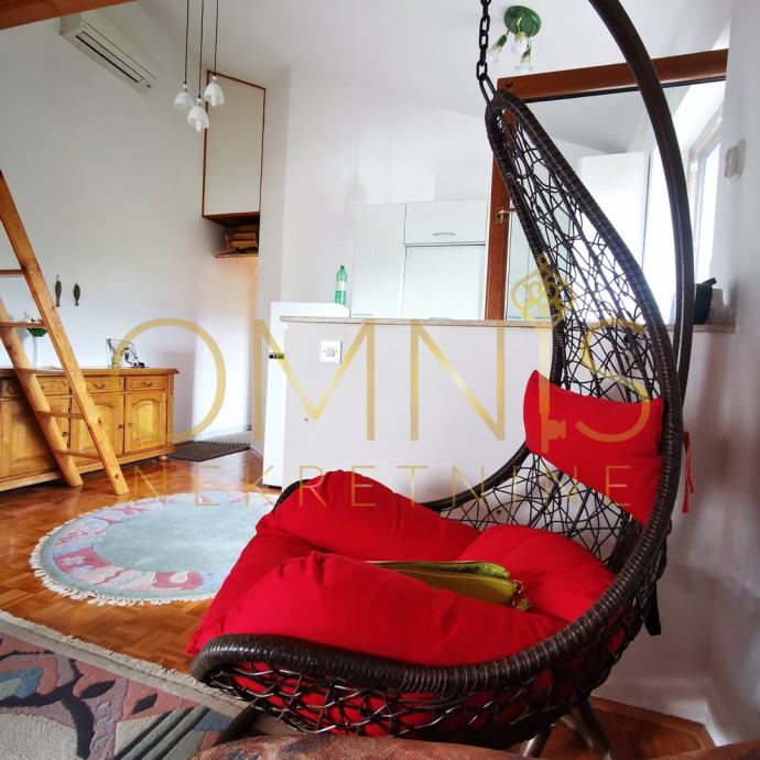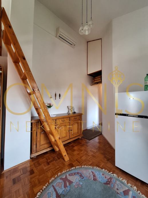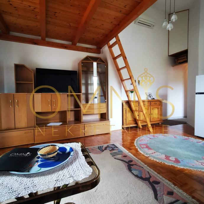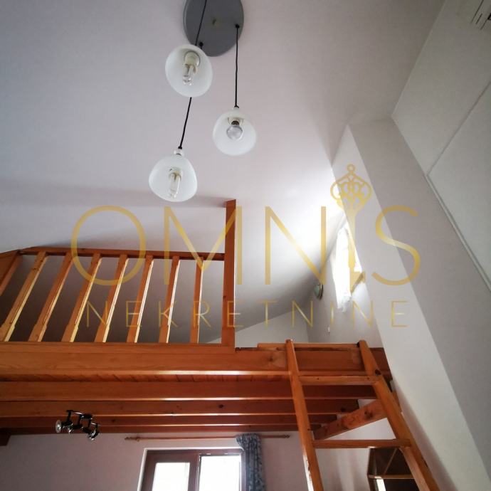 Stan je potpuno namješten, te se sastoji od jedne spavaće sobe, open space dnevnog boravka s kuhinjom i blagavaonicom, ostave, kupaonice i hodnika, te galerije koja je trenutno u funkciji druge spavaće sobe.