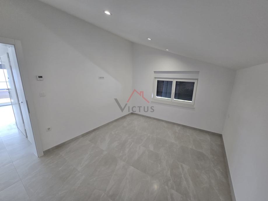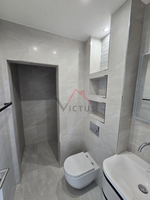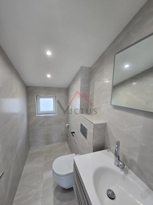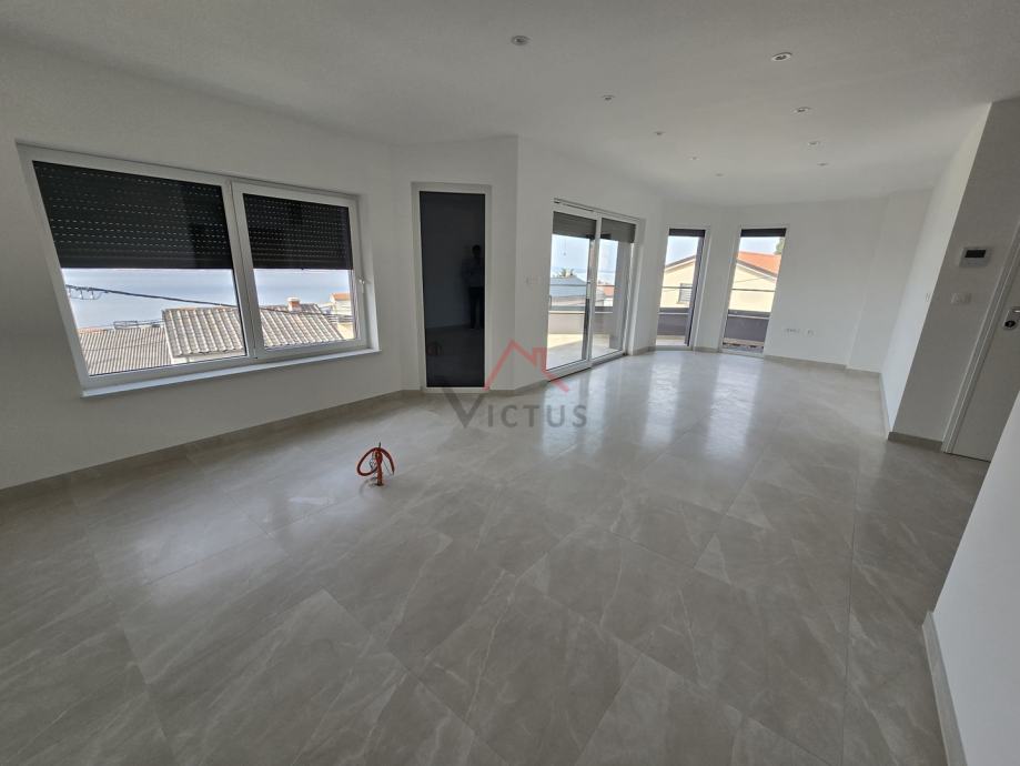 Sastoji se od kuhinje s blagovaonom i dnevnog boravka otvorenog koncepta sa izlazom na veliku terasu s koje se pruža otvoreni pogled na more i otok Krk, dvije spavaće sobe, kupaonice, te gostinjskog wc-a. Postavljeno je podno grijanje, komarnici, rolete na struju, protuprovalna vrata, te klima uređaj. Unutar okućnice se nalazi parkirno mjesto u vlasništvu.