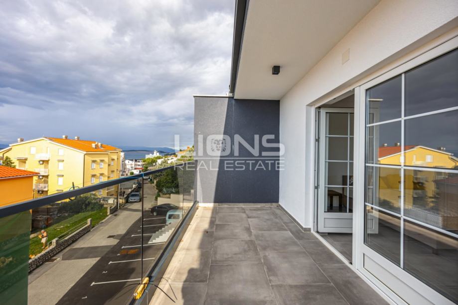 Stan površine 63,88 m² odlikuje se svijetlim i prozračnim interijerom, a sastoji se od hodnika, dvije ugodne spavaće sobe, dnevnog boravka povezanog s kuhinjom i blagovaonicom, moderne kupaonice te dodatnih vanjskih prostora u obliku lođe i natkrivenog balkona. Južna orijentacija osigurava obilje prirodnog svjetla tijekom cijelog dana, dok pogled na more dodatno naglašava njegovu ekskluzivnost i pruža jedinstven ugođaj opuštanja.