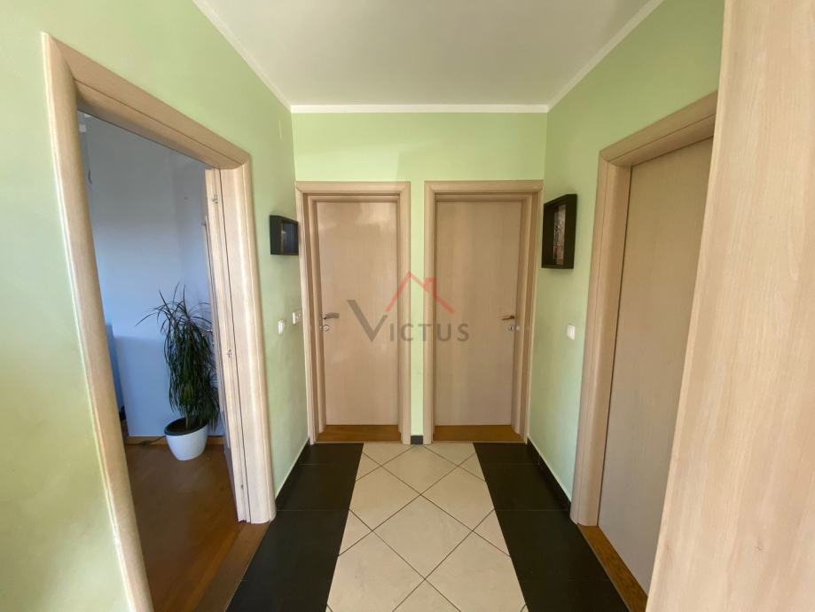 Stan se sastoji od hodnika, dnevnog boravka s kuhinjom i blagovaonicom otvorenog tipa, dvije spavaće sobe, kupaone i prostrane natkrivene terase odakle se pruža pogled na more i otok Krk. Stan je klimatiziran i opremljen PVC stolarijom. Parkirno mjesto u vlasništvu.