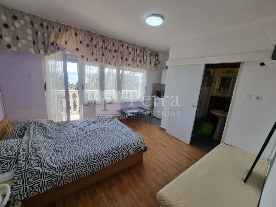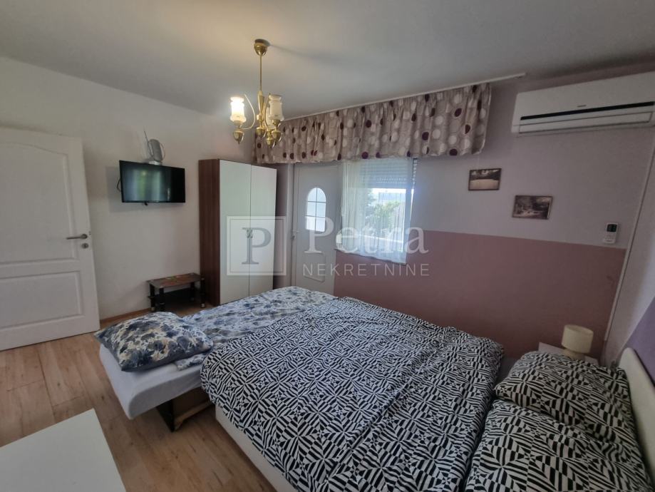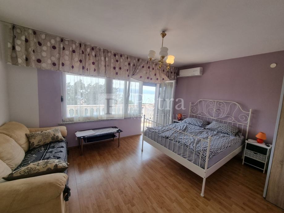 Dva apartmana na drugom katu s pogledom na more i parkirnim mjestom. Veći se sastoji od kuhinje, dvije spavaće sobe svaka sa vlastitim balkonom, te kupaonice. Studio apartman također ima vlastiti balkon. Uređeni su i održavani sa klimatizacijom. Dobra lokacija u blizini plaže.