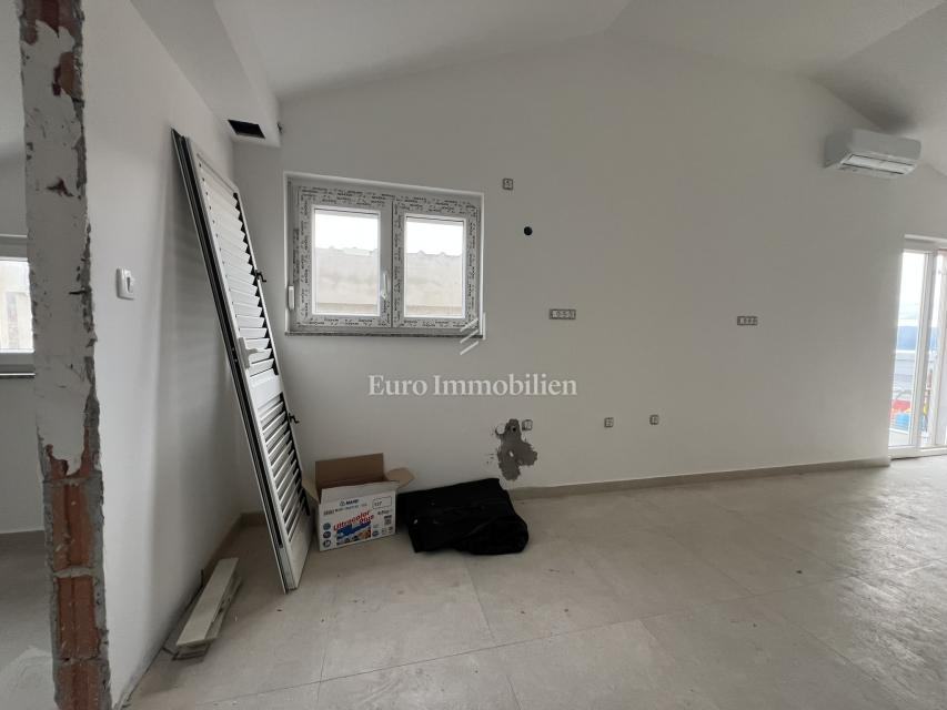 Posebnu vrijednost stanu daje prostrana nenatkrivena terasa površine 101,57 m² s otvorenim pogledom na more, koja pruža izniman potencijal za uređenje dodatnih sadržaja. Terasa je idealna za stvaranje vanjske zone za opuštanje i druženje, s mogućnošću postavljanja lounge garniture, sunčališta, vanjske blagovaonice, roštilja ili čak jacuzzija, čime se maksimalno iskorištava boravak na otvorenom. Dodatnu praktičnost stanu daje spremište površine 22,17 m².