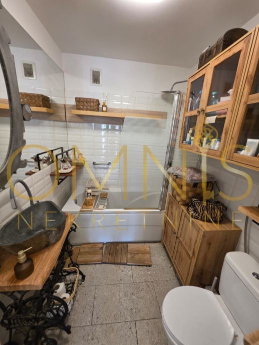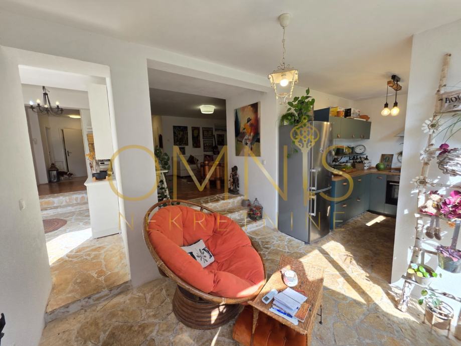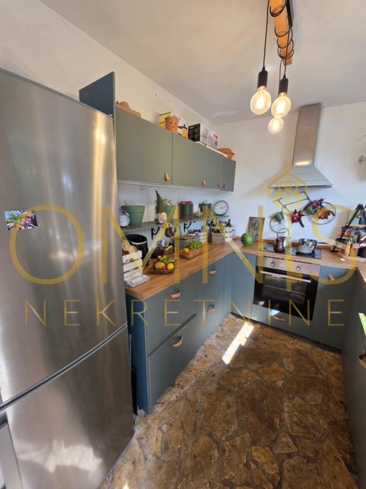 - Uređenost: Djelomično renovirano 2021., nova moderna kuhinja, klima uređaj, kombinacija kamenih i drvenih podova.