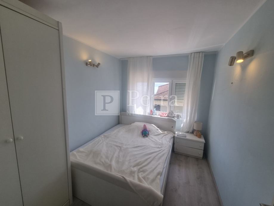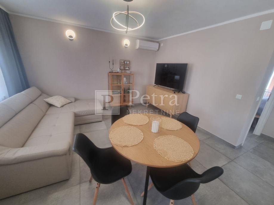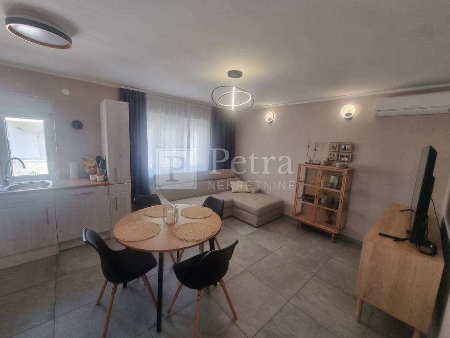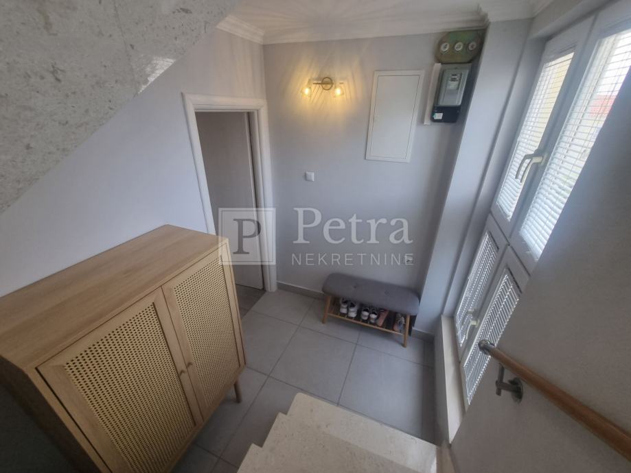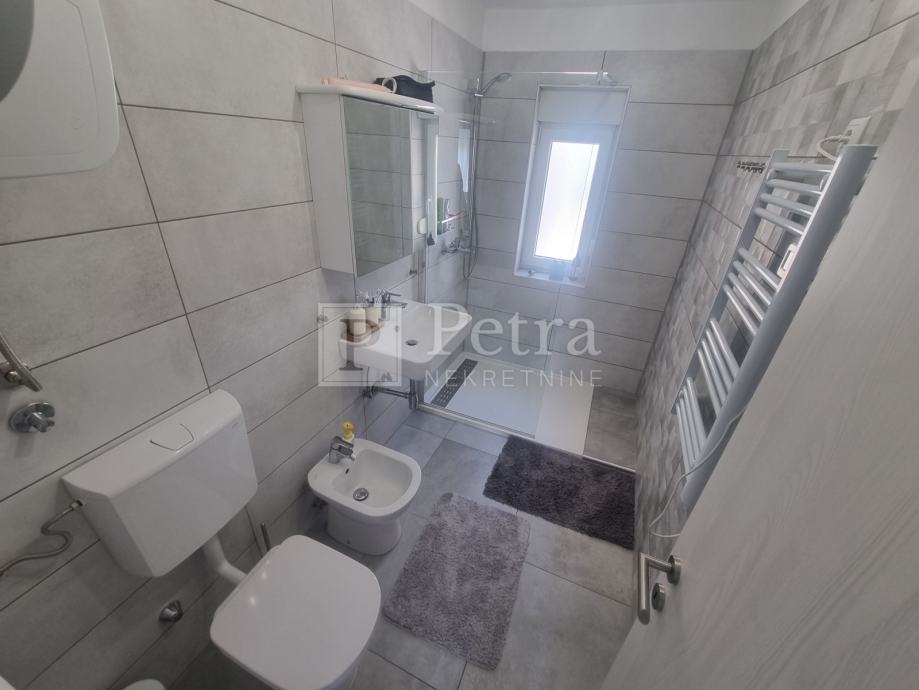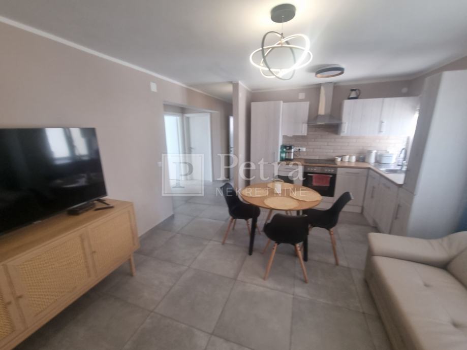 Stan se sastoji od dnevnog boravka s kuhinjom, hodnika, tri spavaće sobe, kupaonice, predulza i terase na ulazu. Pripada mu parkirno mjesto.