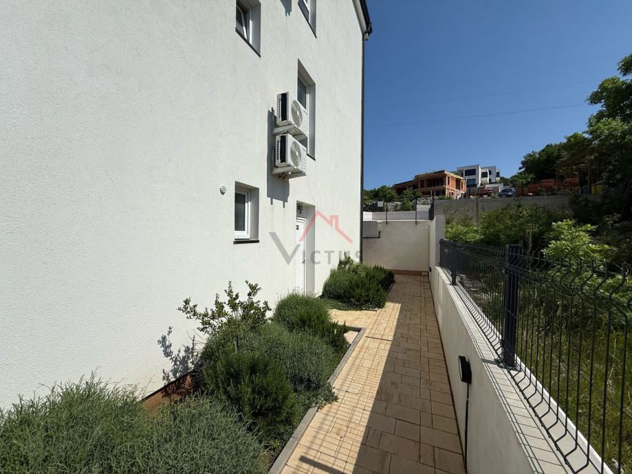 Na povišenoj i mirnoj lokaciji, sa lijepim pogledom na more, grad Crikvenicu i otok Krk, prodajemo četiri stana smještena u zgradi u nizu.