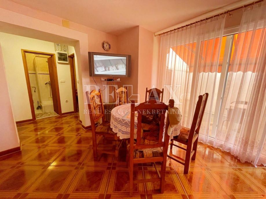 Prizemlje kuće obuhvaća prostrani apartman koji se sastoji od dvije udobne spavaće sobe, moderno opremljene kuhinje, prostrane blagovaonice, dnevnog boravka, kupaonice te dvije terase. Ovdje ćete pronaći savršen prostor za uživanje u toplim ljetnim večerima ili opuštanju uz jutarnju kavu.