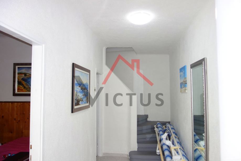 Renovirana kuća u centru Crikvenice udaljena od mora 50ak m. Sastoji se od hodnika, kuhinje s blagovaonom, dnevnog boravka u prizemlju nekretnine, a na kat, koji se sastoji od dvije spavaće sobe i kupaonice, vode unutarnje strpenice .