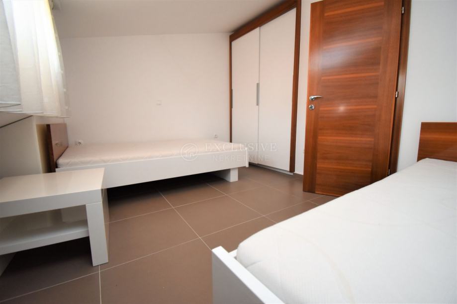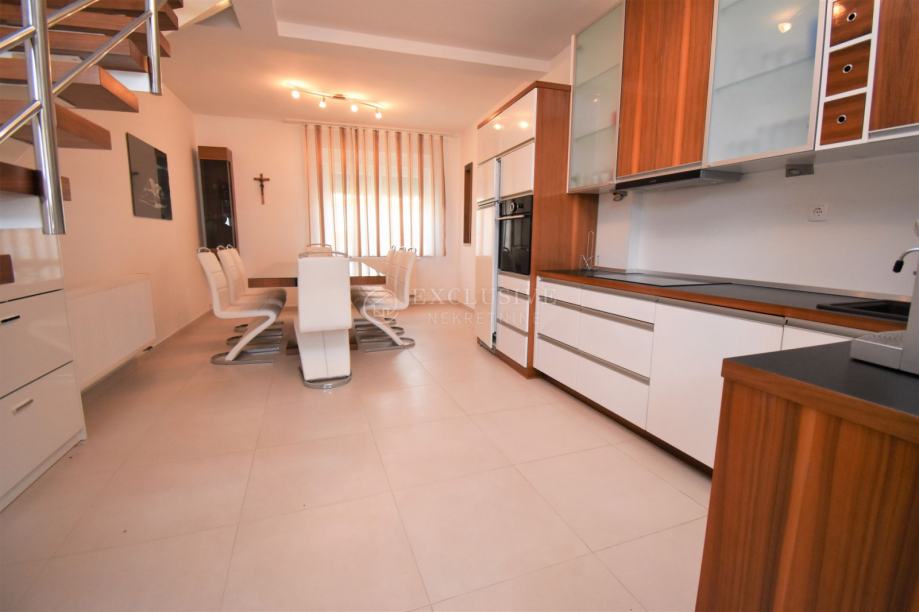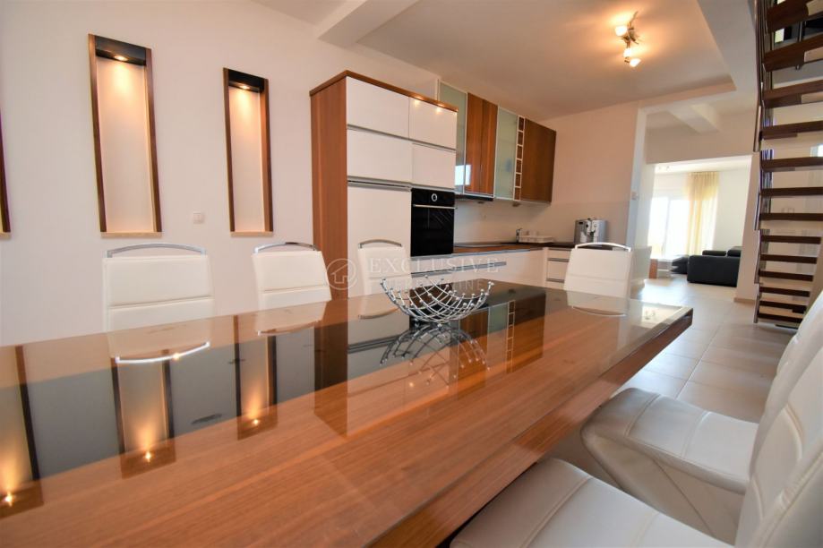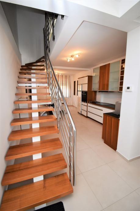 Ovaj vrhunski apartman je kompletno renoviran 2014 godine, u gradnji su korišteni vrhunski materijali (keramika je prve klase, podovi u sobama i stepenice su obložene drvom od američkog oraha), namještaj je također ručno rađen po mjeri i djelomično od američkog oraha, tako da je postignut sklad na svim nivoima. Sve tri etaže ovog vrhunskog apartmana imaju klimu. Energetski certifikat A klase upotpunjuje cijeli dojam ovog apartmana te je garancija vrlo visoke kvalitete i luksuza koji ova nekretnina pruža. Cijena uključuje sve navedeno, a uredni papiri garantiraju brz prijenos vlasništva.