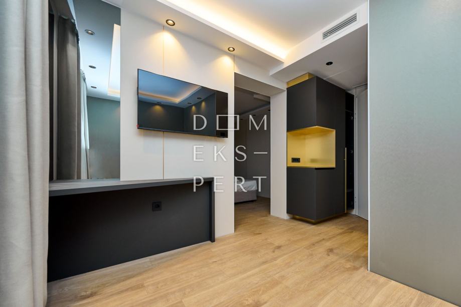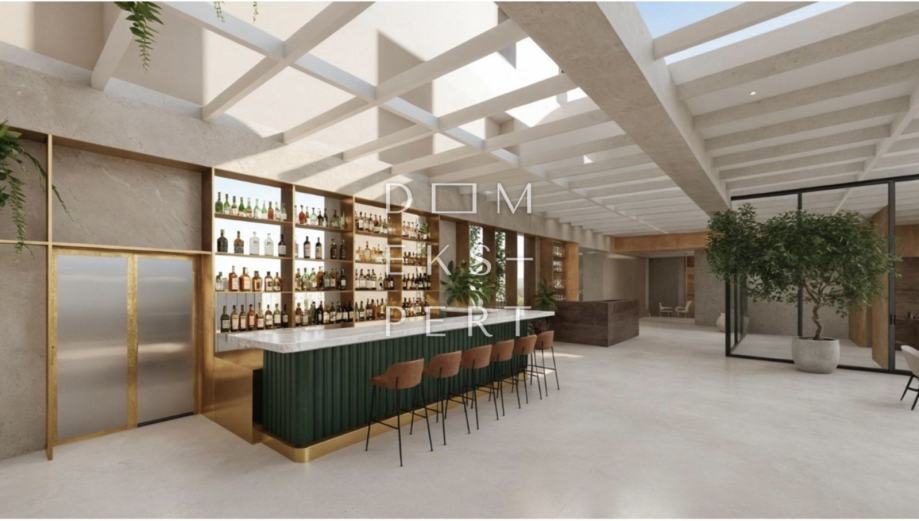 Zgrada se sastoji od prizemlja i dva kata. Površina apartmana je 23.03 m². Odličnog je i funkcionalnog rasporeda, pun svjetla, luksuzno opremljen.