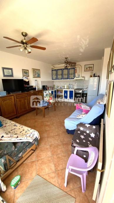 Veći stan se sastoji od sobe, kuhinje i blagovaonice, hodnika, kupaonice, natkrivene terase s pogledom na more i lođe ukupne površine 49.48m2, dok je drugi stan garsonijera površine 10.50m2.