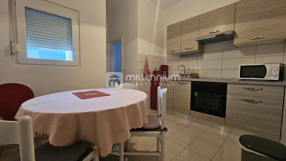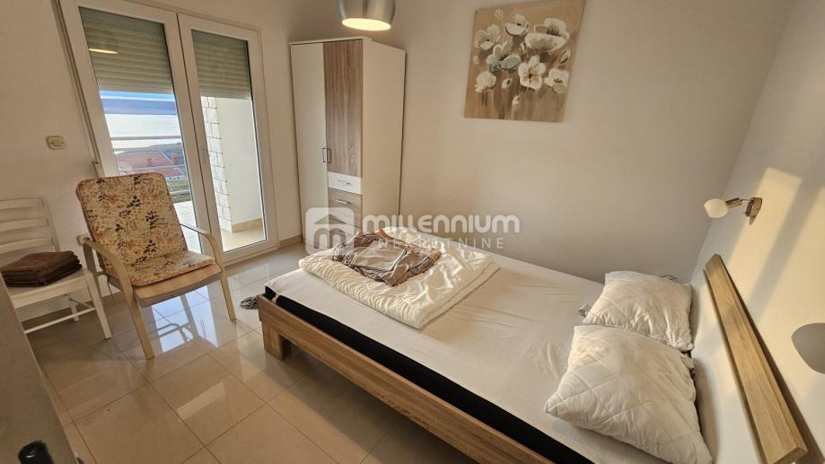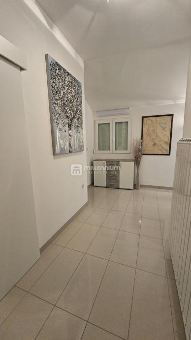 Na prvom katu nalazi se stan s dnevnim boravkom, kuhinjom, blagovaonicom, dvije spavaće sobe, kupaonicom, ostavom, hodnikom i čak dva balkona s kojih se pruža očaravajući pogled na more.
