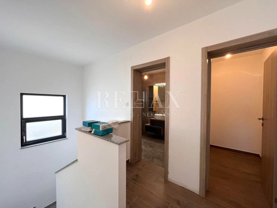 Unutarnjim stubištem se ide na prvi kat gdje se nalazi kupaona i dvije spavaće sobe s natkrivenom terasom sa pogledom na more.