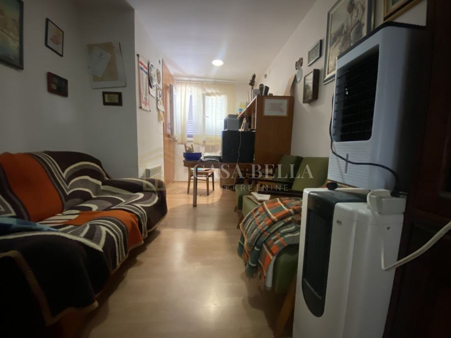 CASA BELLA iz ponude izdvaja etažu u visokom prizemlju kuće, smještene u mirnoj ulici u Dramlju, samo 200 metara od mora i plaže.
