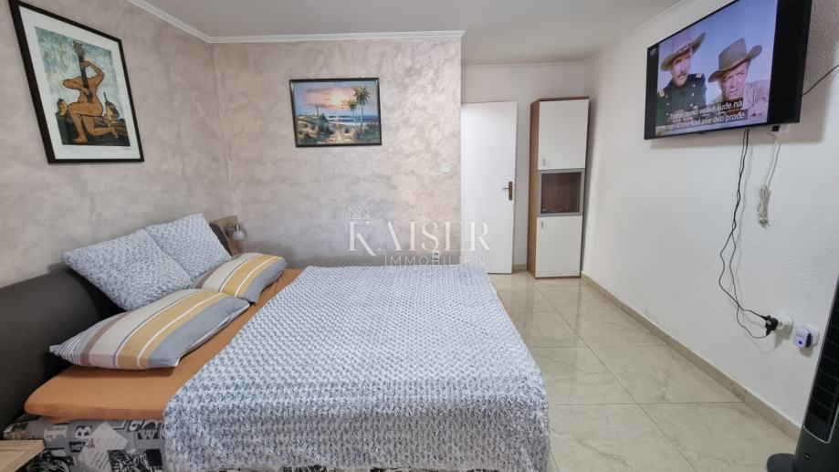 Nekretnina se nalazi 650m pješačke udaljenosti do mora i prve plaže, odnosno 950m automobilom.
