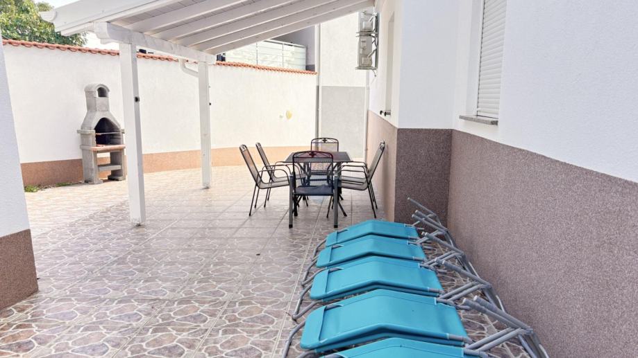 U uređenom dvorištu od 130 m² nalazi se bazen, roštilj te nadstrešnica ispod koje je osiguran ugodan prostor za druženje i boravak na otvorenom tijekom toplijih mjeseci.