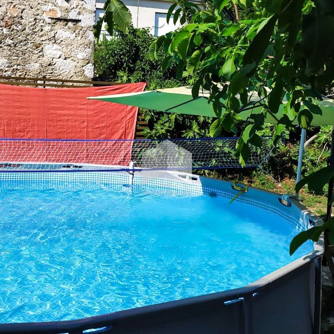 Posjed je ograđenim kamenim zidovima što osigurava mir i privatnost. Na ograđenoj okućnici trenutno se nalazi okrugli montažni bazen promjera 5,50 m x 138 cm visine koji je u funkciji sezonski. Kuća je u funkciji turističkog iznajmljivanja.