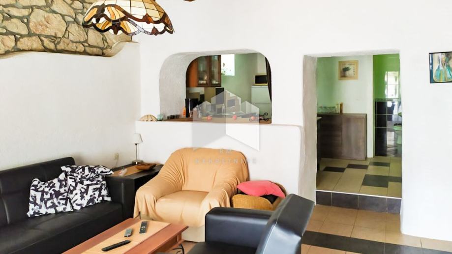 Parkiralište ispred kuće za 3 automobila i dodatno zemljište uz kuću 345 m2 koje se također koristi kao parking. Kuća se prodaje sa svim inventarom i kompletno namještena.