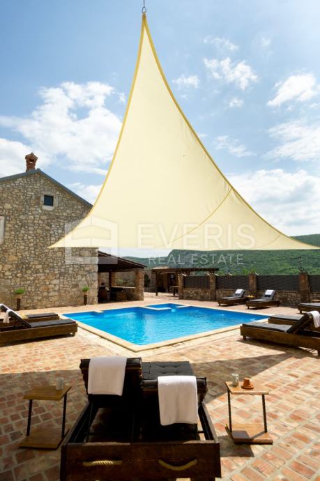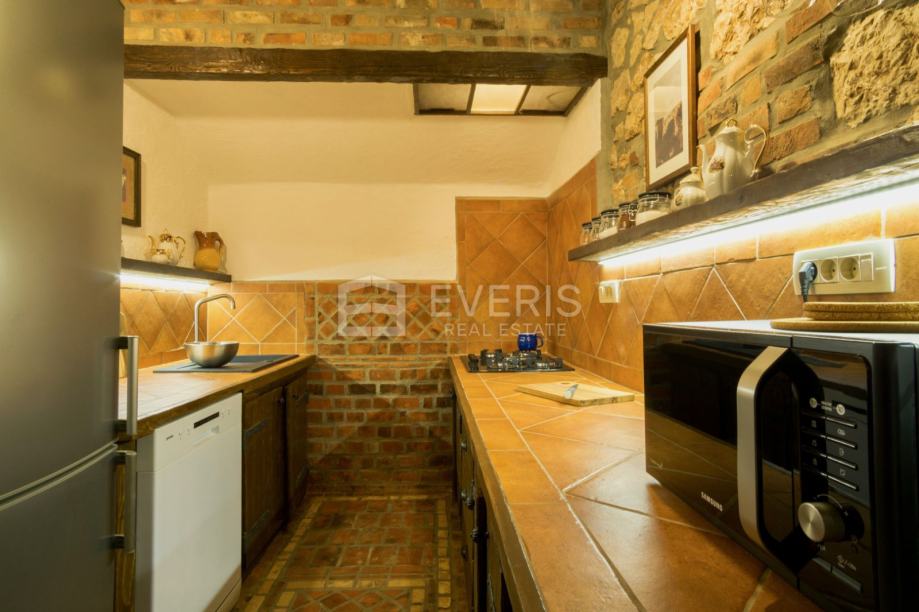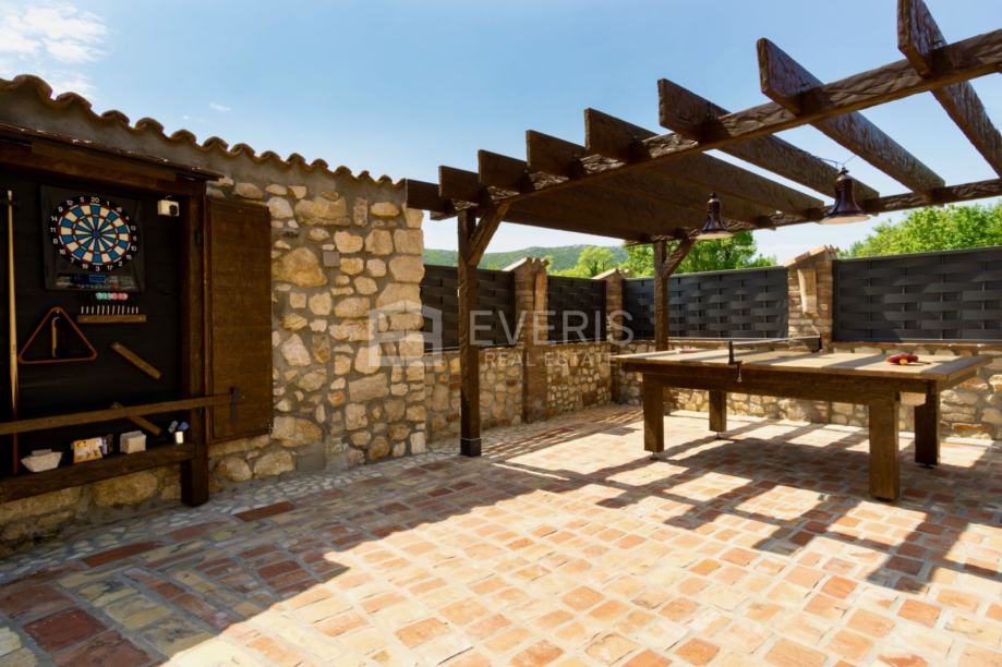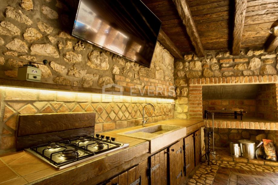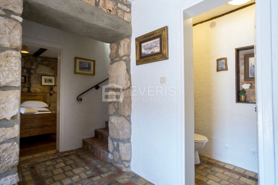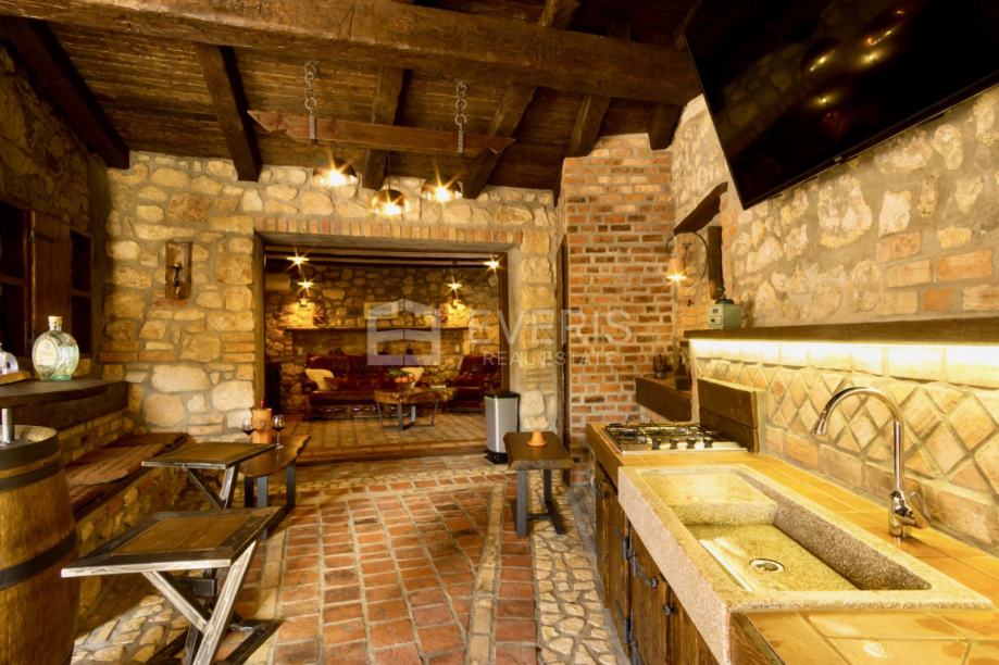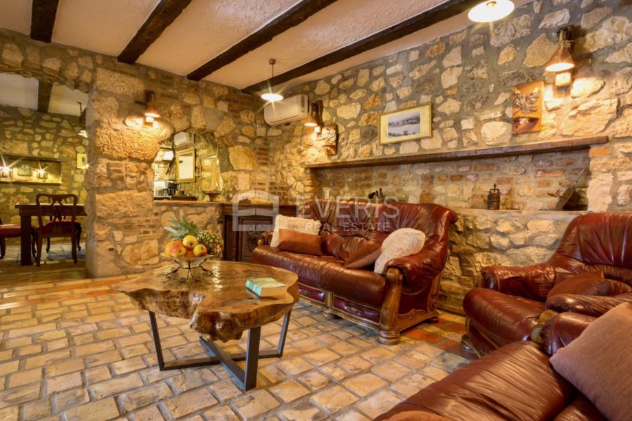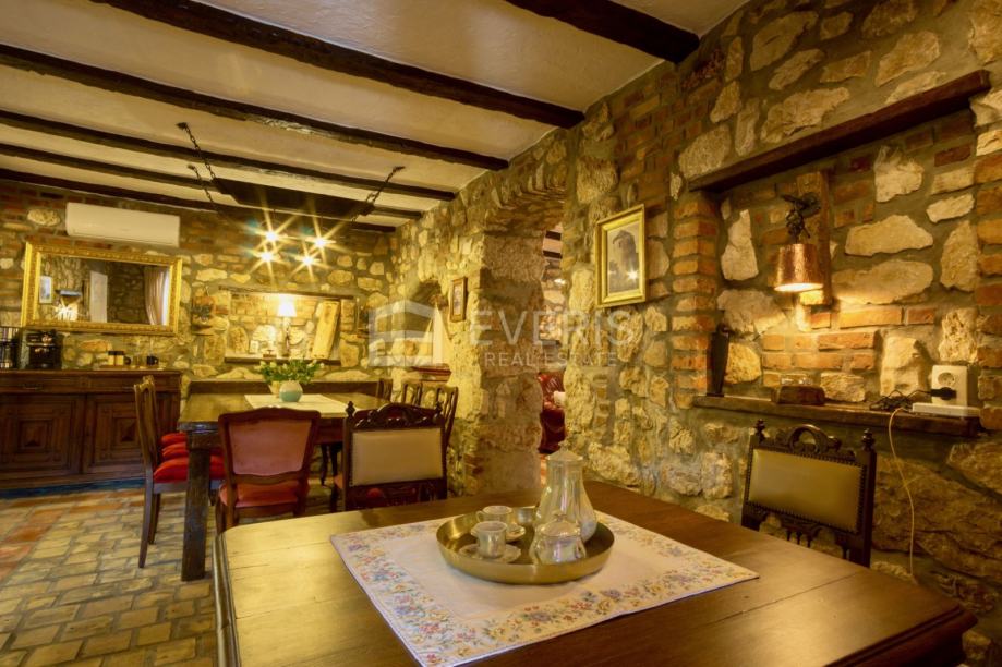 Nekretnina je uređena starina u mediteranskom stilu te je građena od kamena, a sastoji se od prizemlja i kata: