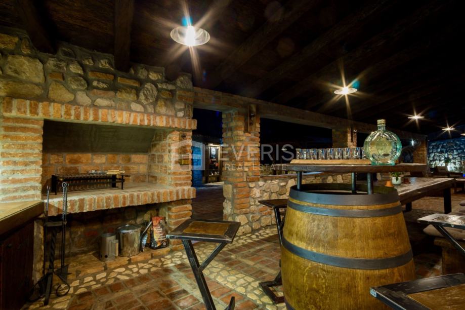 Na okućnici, ukupne površine 600 m2, se nalazi sunčalište i veliki bazen površine 50 m2. Na terasi se nalazi stol za biljar, pikado i stolni tenis.