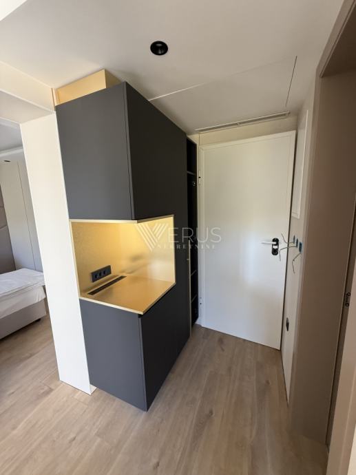 Ulazna vrata su protuprovalna marke Diere, dok su unutarnja vrata izrađena od lakiranog medijapana, s magnetskom bravom i skrivenim pantima, što prostoru daje dodatnu čistoću linija i suvremen izgled. Sve u apartmanu odiše profinjenošću i vrhunskom završnom obradom.