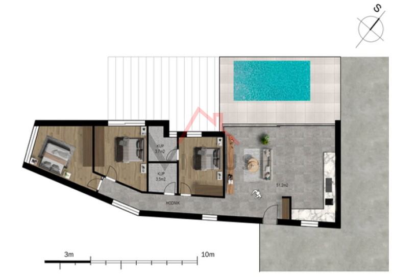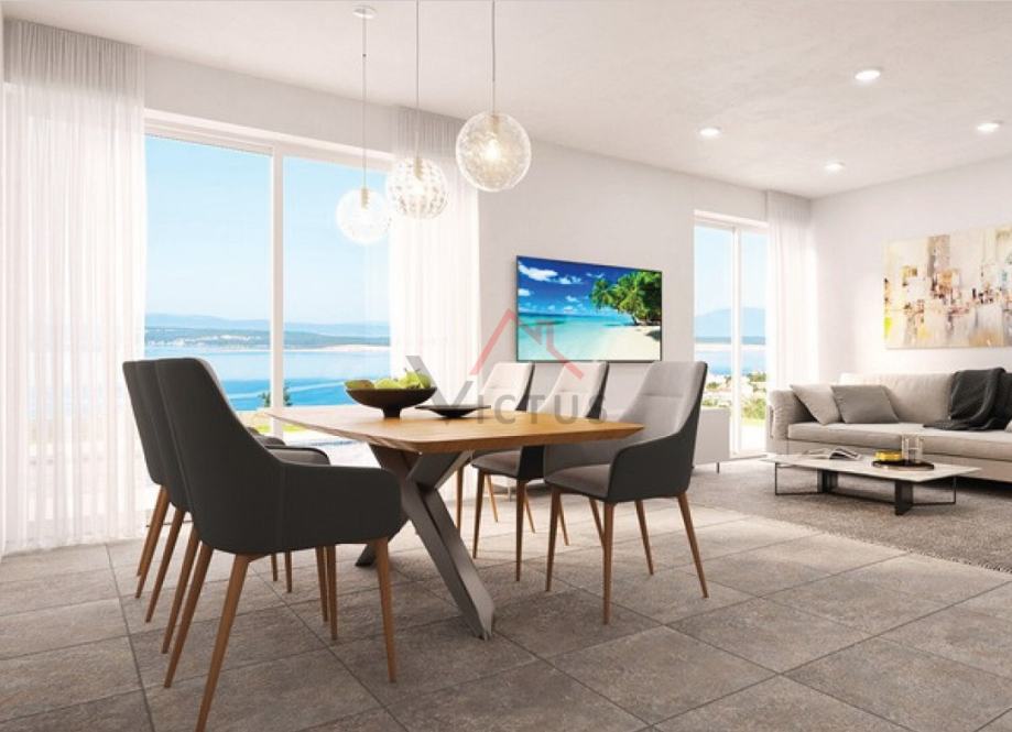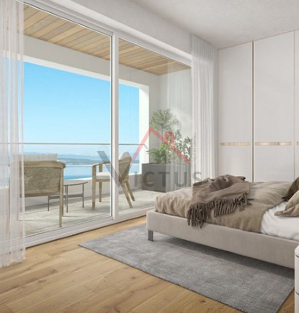 Ekskluzivan stan koji se nalazi u objektu sa samo dva stana, smješten na mirnoj i povišenoj lokaciji s fantastičnim panoramskim pogledom na more. Na prodaju je više objekata s planiranim završetkom krajem 2026. godine. Svaka jedinica nudi svojim vlasnicima: privatni bazen, terasu i dvorište, podno grijanje u svim prostorijama, kvalitetnu aluminijsku stolariju, vinilne podne obloge (LVT ili SPC) - po želji kupca moguće i druge obloge, te parkirno mjesto. Objekti su stambene površine od 72 m2 do 109 m2, te od 2 - 4 spavaće sobe.