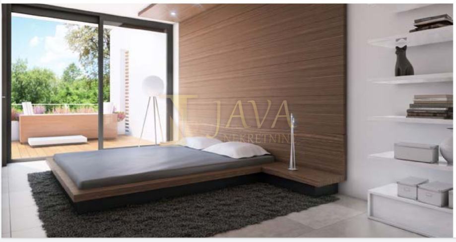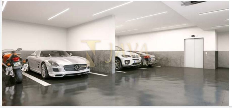 Zgrada ima vrhunsku termoizolaciju, keramiku, drvene podove visoke kvalitete, aluminijsku stolariju, podzemnu garažu, 4 bazena, spremišta, kotlovnicu te lift koji iz garaže vodi do svakog stana.