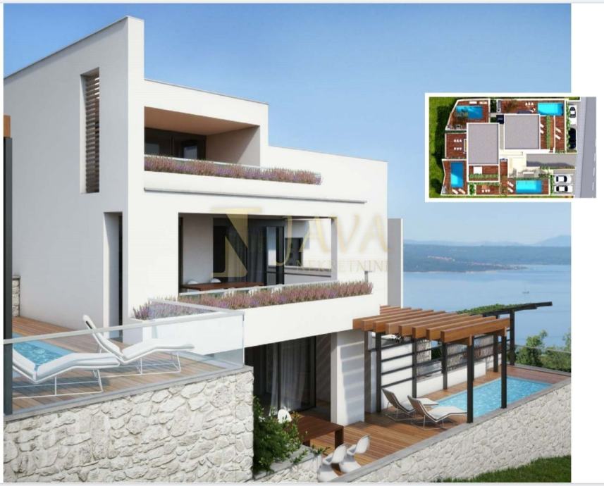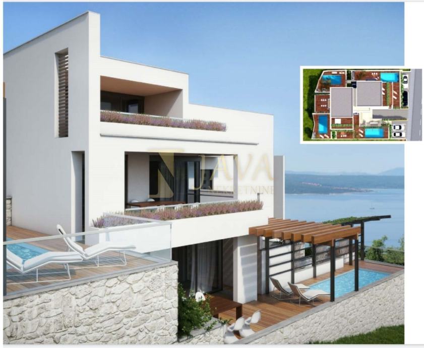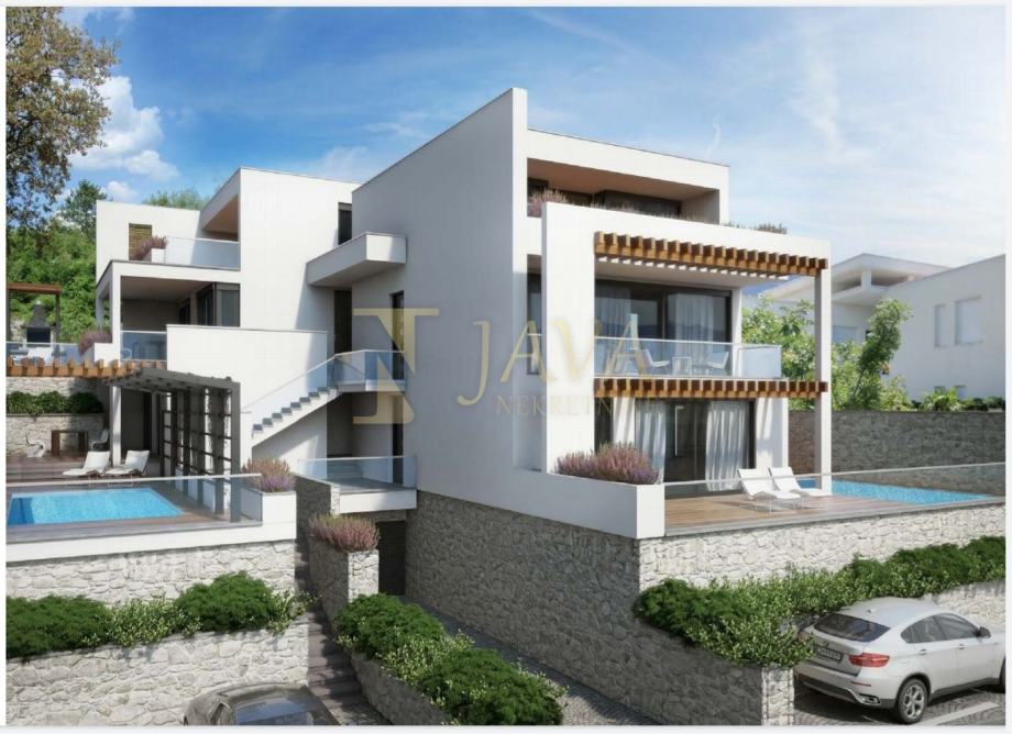 Jedinstven dvoetažni stan u Crikvenici u novogradnji sa samo 4 stana. Svaki stan ima svoj bazen, terasu, zaseban ulaz, panoramski pogled na more.