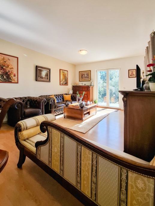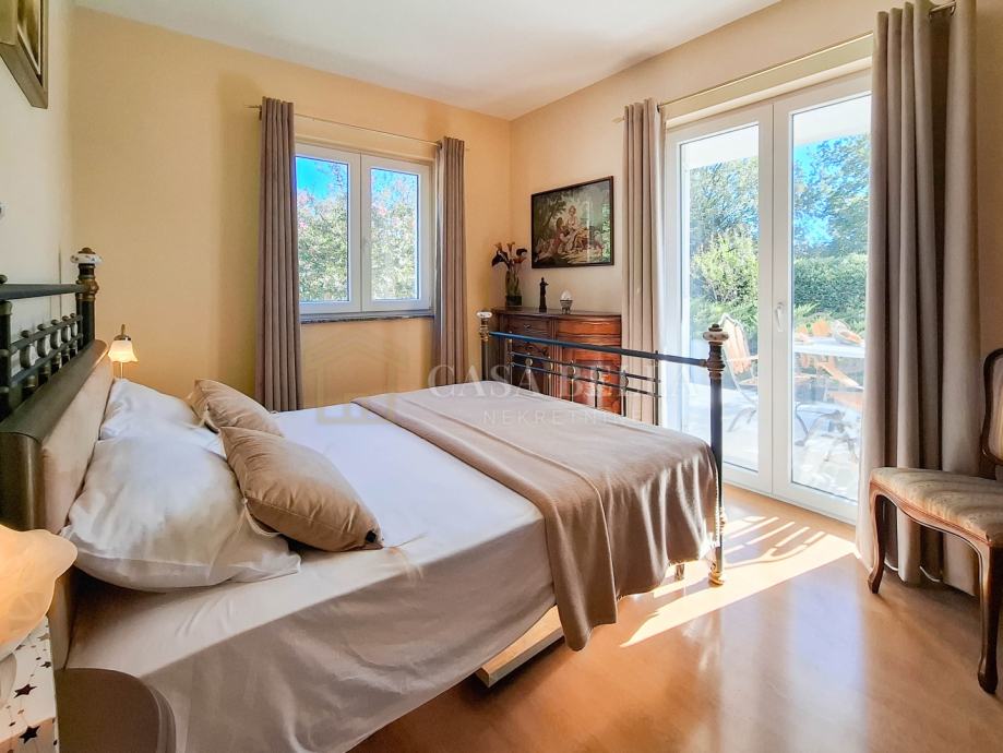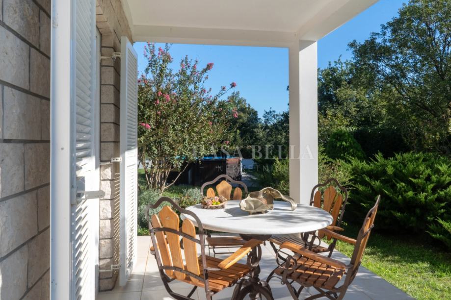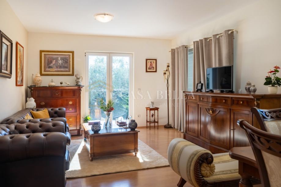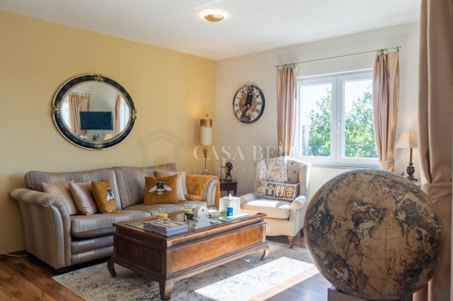 Kupnja kuće s namještajem ili bez njega je po dogovoru. Okućnica površine 631,44 m² dodatno obogaćuje ovu nekretninu – nudi više od sedam parkirnih mjesta, dva roštilja, bazen te uređeni vrt s mediteranskim biljem koji osigurava potpuni ugođaj privatnosti.