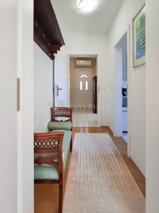 Na prvom katu smješten je predivan stan koji se sastoji od ulaznog hodnika, kupaonice, dodatnog WC-a, spavaće sobe, dnevnog boravka, kuhinje s blagovaonicom te dvije terase s kojih se pruža lijep pogled na more.