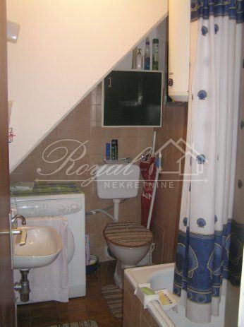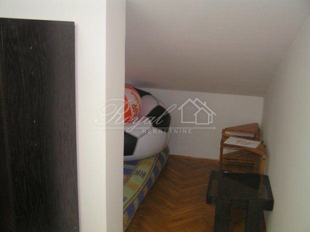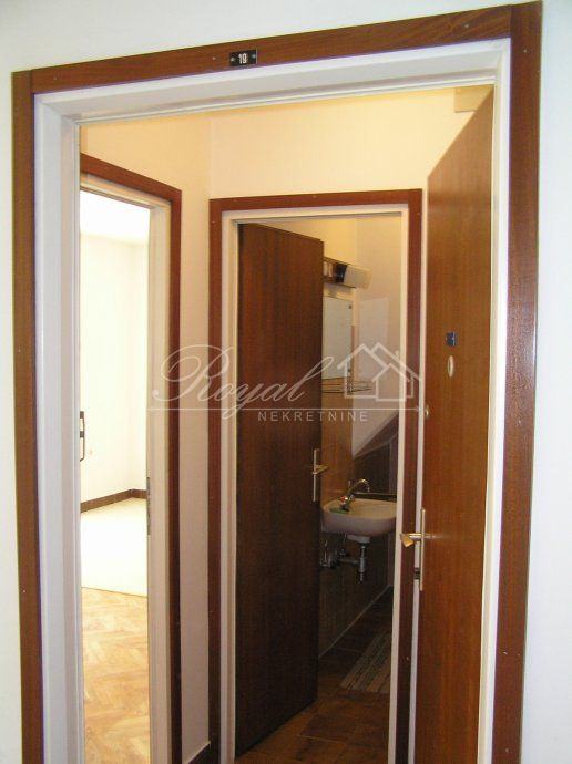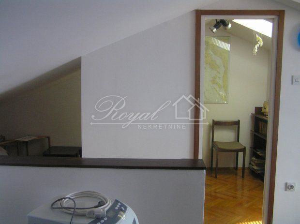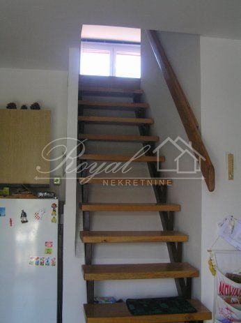 Prodajemo dvoetažan stan na zadnjem katu (3.) i potkrovlju. Stan se sastoji od malog predsoblja, kupaonice, dnevne sobe i kuhinje, te balkona - na 3.katu (26 m2), a u potkrovlju su još dvije sobe - spavaonice (29m2). Stan je tlocrtne površine 55 m2, no kako u potkrovlju postoje i kosine (od min 60 cm do 220 cm) to je njegova obračunska površina 42 m2 koliko je i upisano u gruntovnici, za obračun komunalnih naknada i drugih nameta. U podrumu zgrade stanu pripada drvarnica od 3 m2 koja nije uračunata u stambenu kvadraturu stana (posebno obračunata kao 1m2, tj. ukupno 43m2 stambenog prostora). Stan se prodaje nenamješten, a u stanu ostaje kuhinjski blok elemenata+štednjak i peć. Također i termoakumulaciona peć (nekorištena), te jedan fiksni i jedan pomićni klima uređaj!