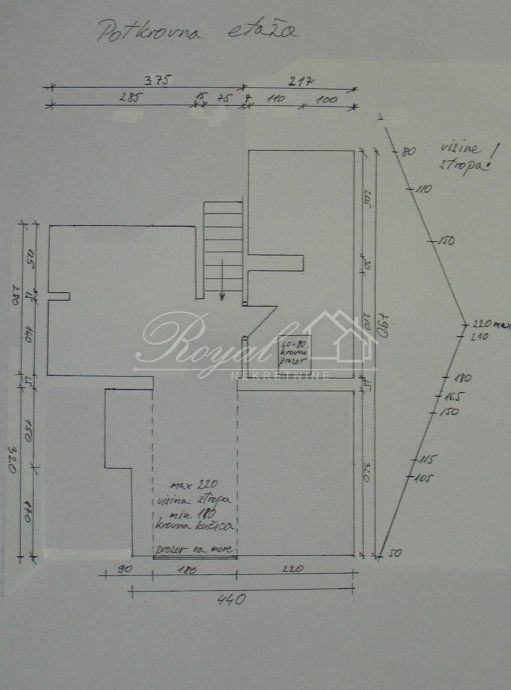 Potkrovni prostor ima jedan normalan prozor (100x140cm) s pogledom na more i jedan manji krovni prozor.