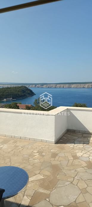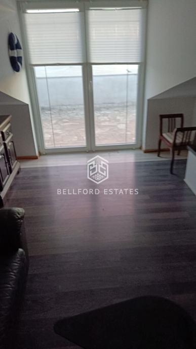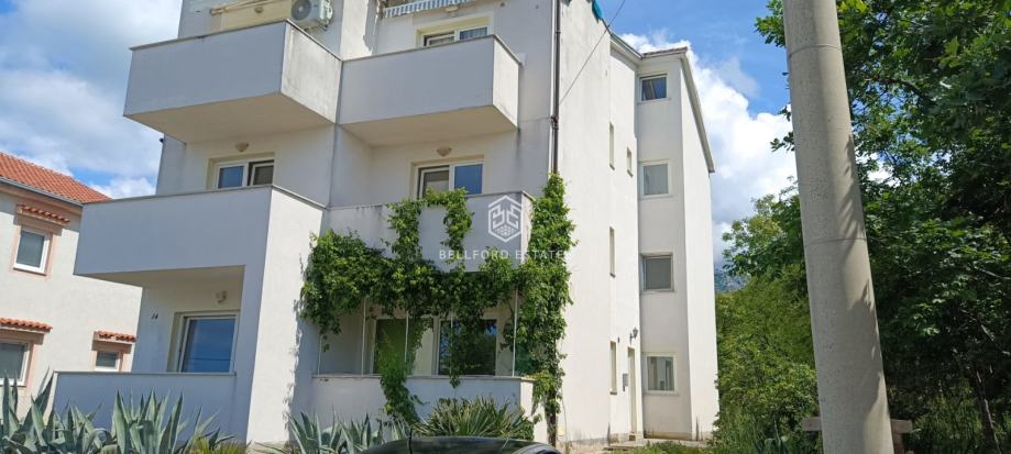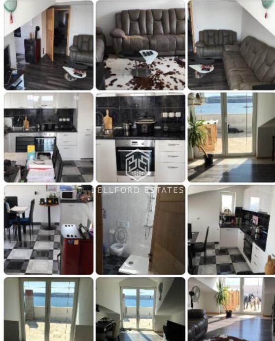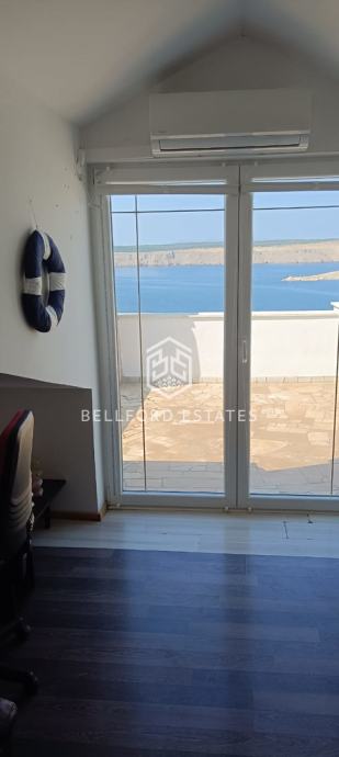 Nekretnina se nalazi na trećem katu zgrade smještene neposredno uz more. Stanu pripada prostrana terasa s tušem, koja nudi izravan pogled na more.