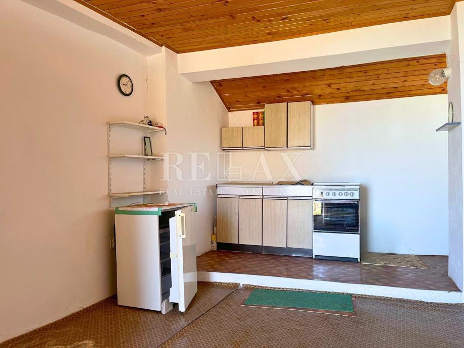Kuća se sastoji od prizemlja i kata. U prizemlju se nalazi velika prostorija s kamenim voltama koja je idealna za uređenje kao prostor za druženje ili kao se može preurediti kao kuhinja i dnevni boravak. Vanjskim stepenicama dolazi se na kat gdje se nalazi malena terasa koja vodi u veliku prostoriju koja se koristi kao kuhinja i dnevni boravak, te se na katu nalazi i spavaća soba.