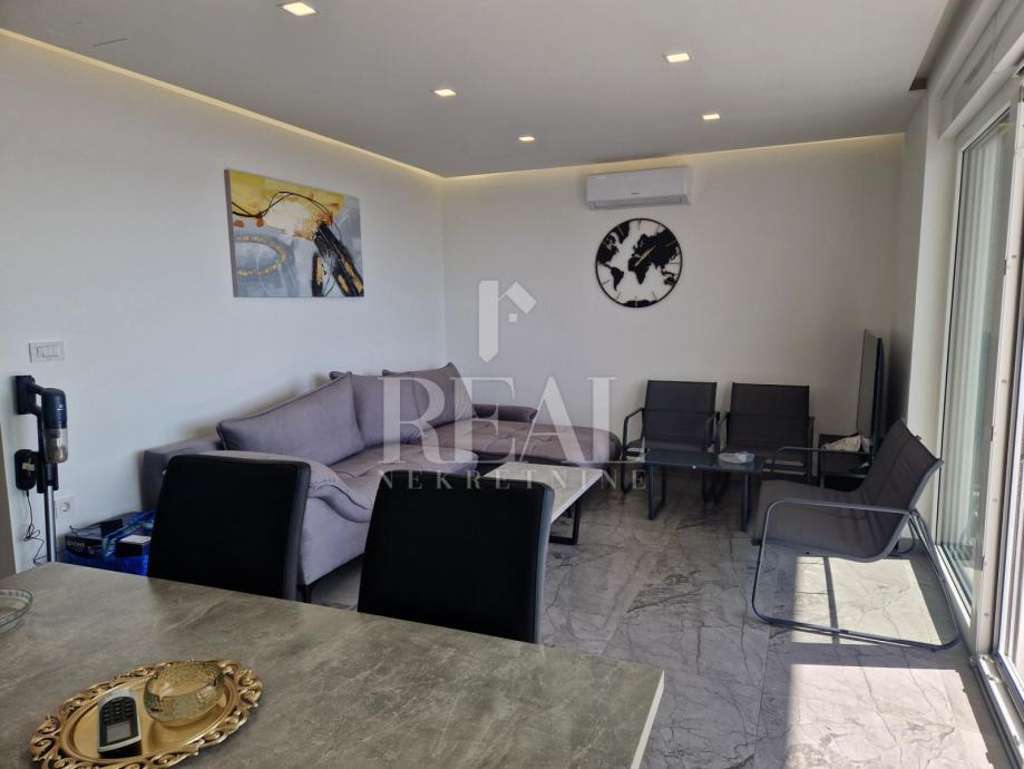 Od opreme izdvajamo protuprovalna vrata, kvalitetnu vanjsku stolariju sa roletama na struju i komaricama, klimu u dnevnom dijelu, etažno podno grijanje u cijelom stanu i kvalitetnu kupaonsku opremu.