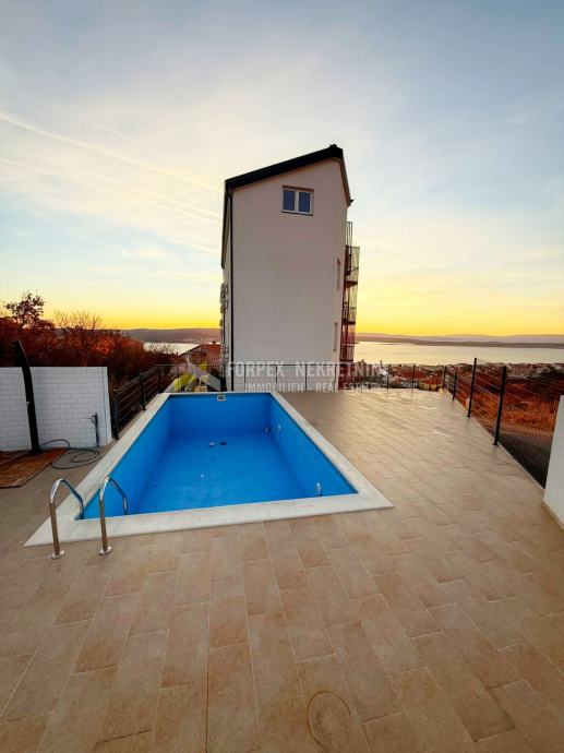 Na prodaju novoizgrađena apartmanska kuća u Crikvenici ukupne stambene površine 157 m2, sa prekrasnim panoramskim pogledom na more. Zgrada je izgrađena 2022. godine i na svakom katu nalazi se po jedan jednosoban stan/apartman (ukupno 4).