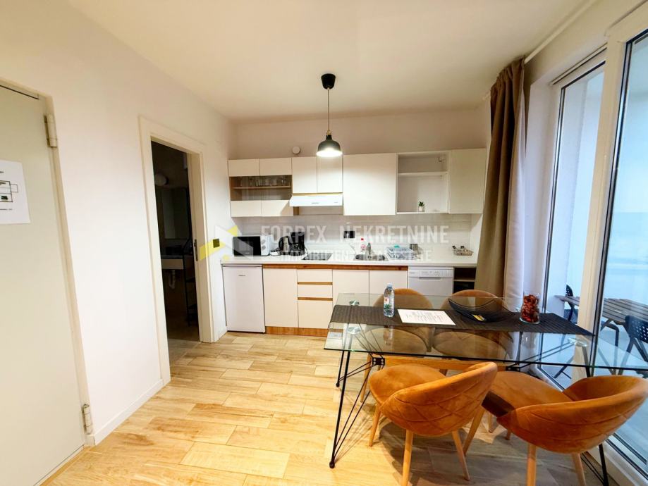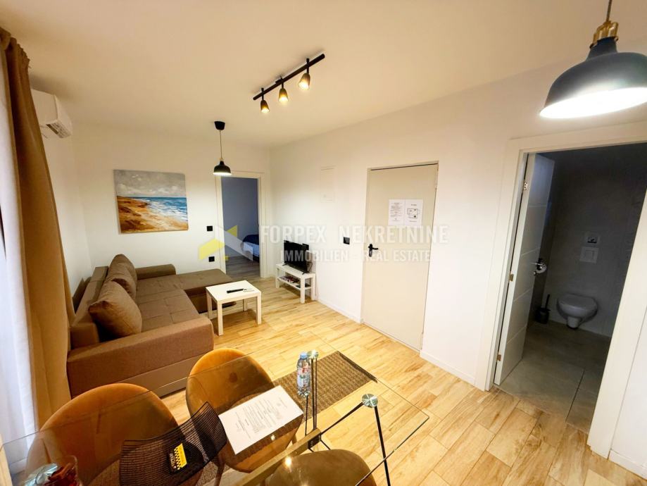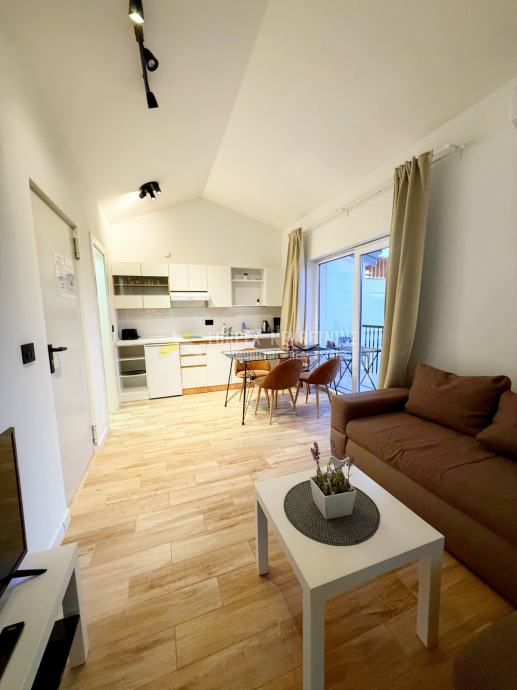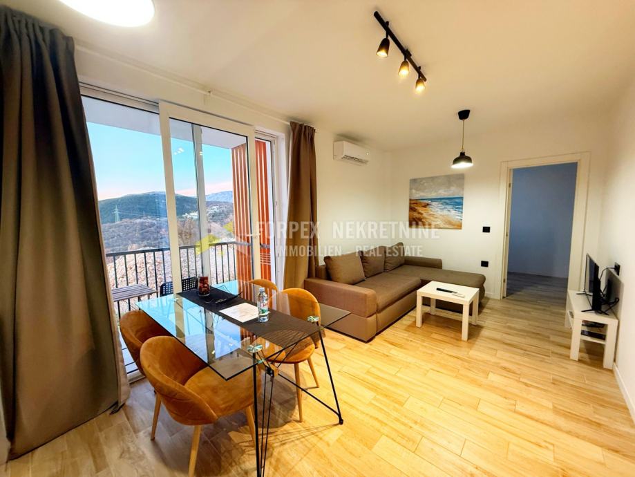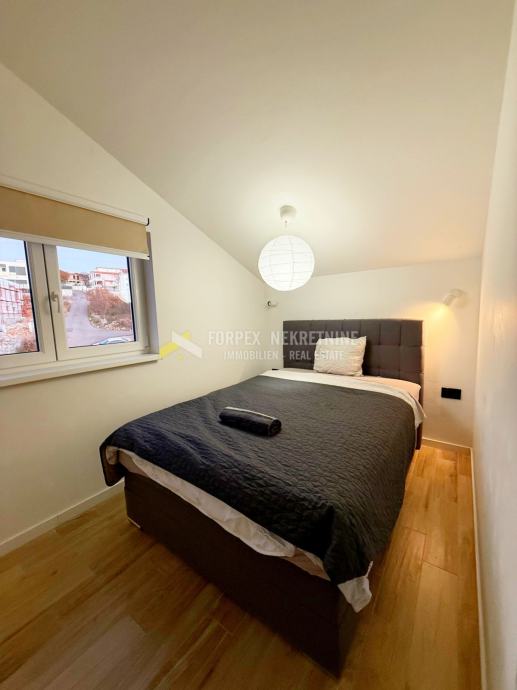 Svaki apartman se sastoji od jedne spavaće sobe, dnevnog boravka sa kuhinjom, kupaonice i balkona. S balkona se pruža pogled na more i otok Krk.